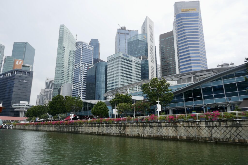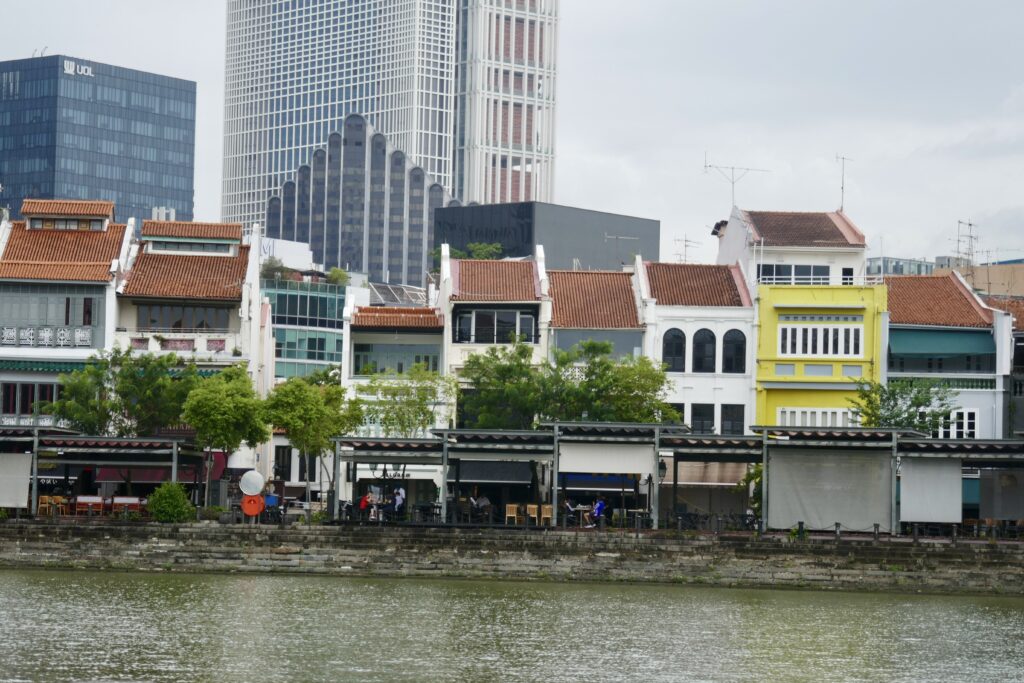 On longe d’abord le quartier coloré de Clarke Quay puis Boat Quay avec au premier plan ses restaurants qui donnent directement sur la marina, au second plan de petites bâtisses colorées et au troisième plan les gratte-ciels du quartier financier. Un monde tout en contraste.